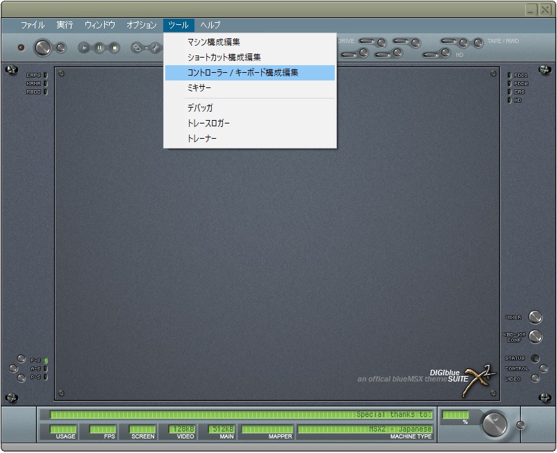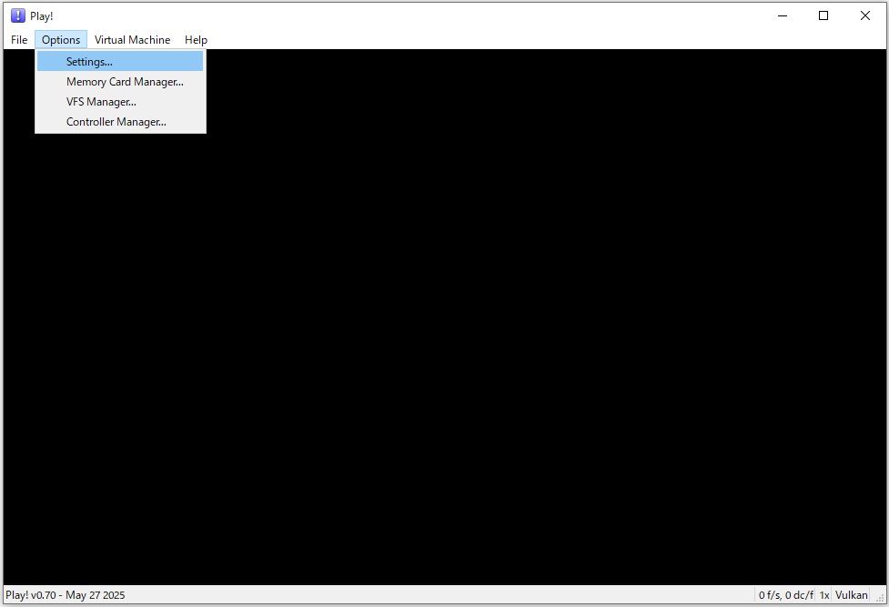【Settings...】【Memory Card Manager...】【VFS Manager...】【Controller Manager...】から各設定が行える