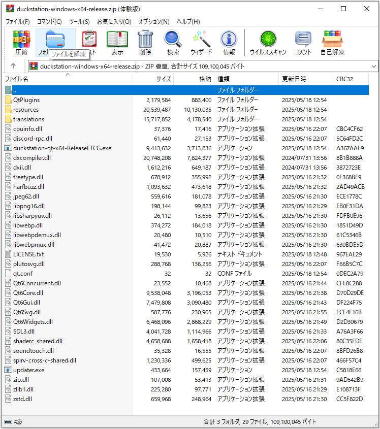 Downloadした『duckstation-windows-x64-release.Zip』は【ダウンロード】フォルダに