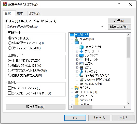 この様に『解凍先(P)(存在しない場合は作成します)』に 表示されている