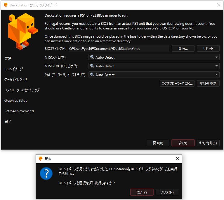 BIOS/ゲームディレクトリとも【はい(Y)】をクリックします