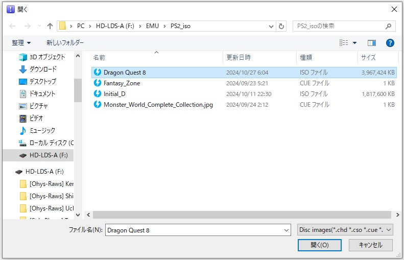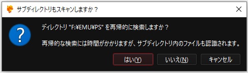【PS】フォルダにゲームイメージを保管しています【はい(Y)】をクリックして検索をかけます