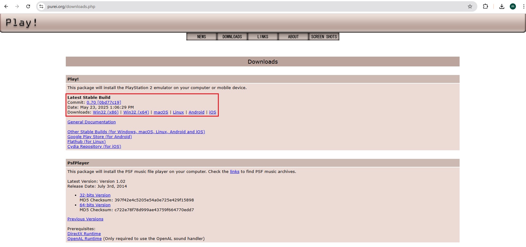 Play! にアクセスして飛びましょう上に表示されている『DOWNLOADS』をクリックします