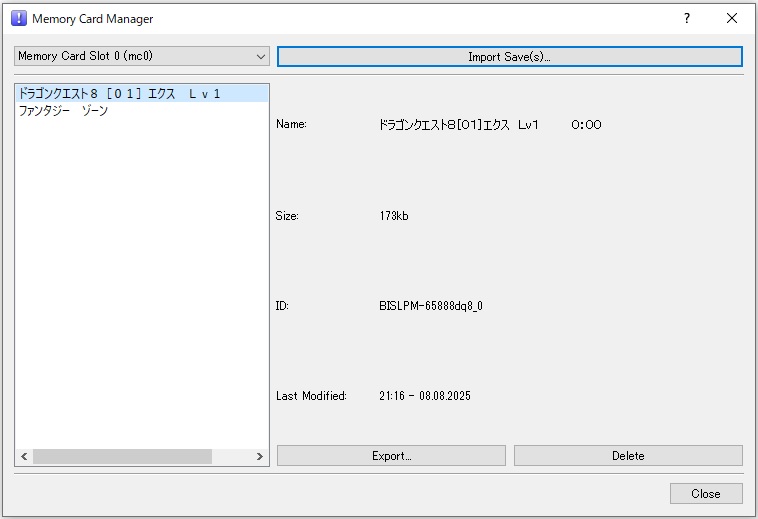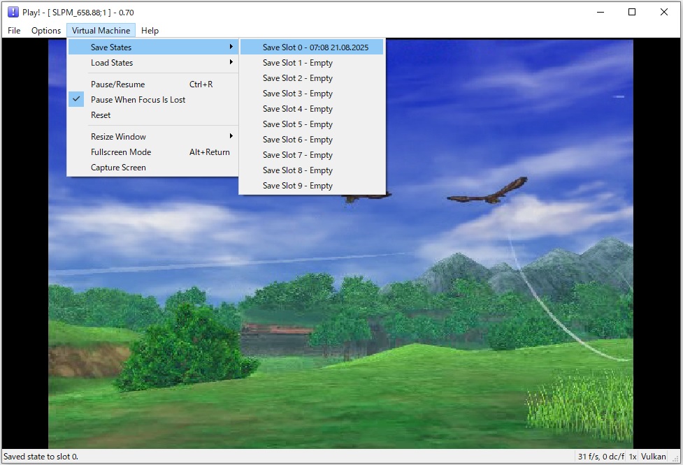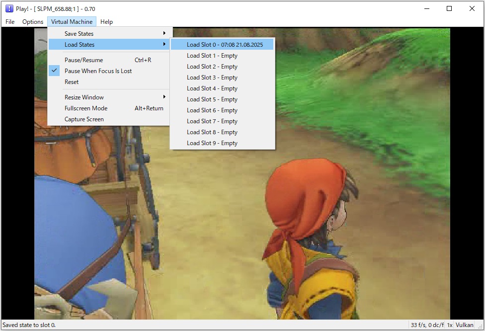「Save Slot 0 - 07:08 21.08.2005」 が表示されます