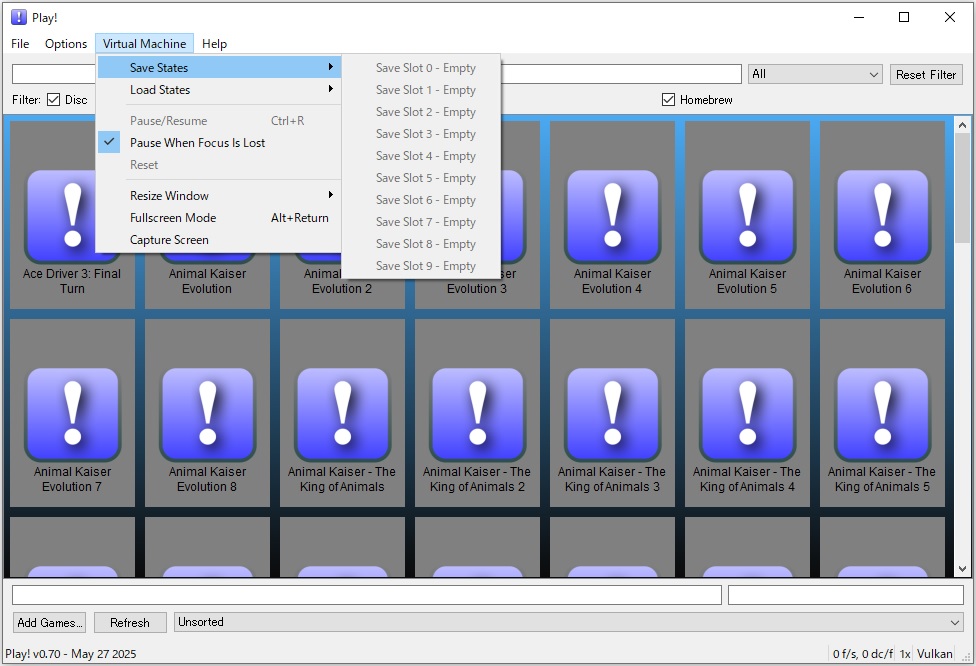 ゲームを起動しないと Save&Load States は起動しません❗❗