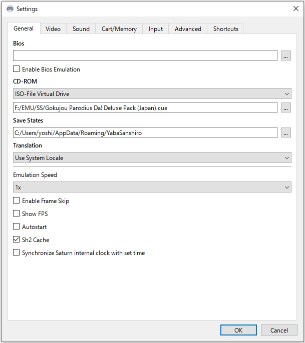 Bios・CD-Rom・Save States・Trabslation・Emulation Speed があり、